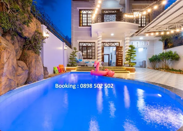 Offering a Jacuzzi and a sauna for a relaxing experience, the beachfront Villa 11B - Bai Sau Thuy Van Gan Bien - Free Loa Keo Karaoke - Ban Bida Lo Vung Tau is located 3.6 km from the French colonial Vung Tau Lighthouse. Providing guests with Wi-Fi and complimentary private parking, the villa is within a 10-minute drive of the White Palace.